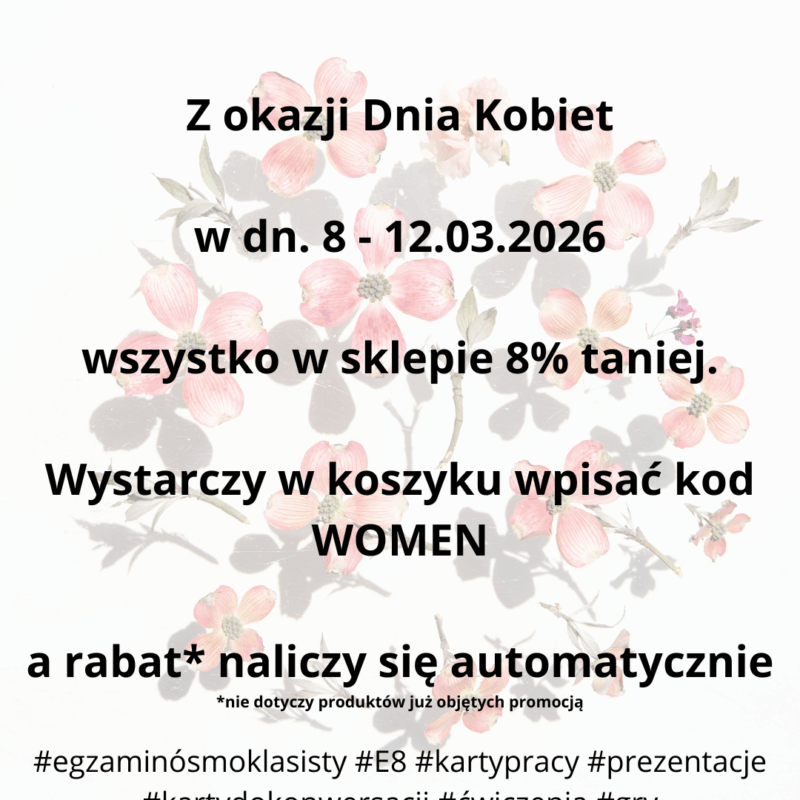 STRONA GŁÓWNA Aktualności DZIEŃ KOBIET Posted on 8 marca 2026 PROMOCJA PRZEDMIKOŁAJKOWA Posted on 8 listopada 2025 THANKSGIVING Posted on 29 października 2025 Zapraszam Cię do skorzystania z darmowego pobrania gry planszowej. Gra planszowa z 27 polami... czytaj więcej → Nowości w sklepie B2 LEVEL VOCABULARY (MATURA) / LETTERS N and O 1,50 zł Dodaj do koszyka Podgląd POSSESSIVE ADJECTIVES CARD GAME 8,00 zł Dodaj do koszyka Podgląd B2 LEVEL VOCABULARY (MATURA) / LETTER M 1,50 zł Dodaj do koszyka Podgląd PAST SIMPLE CONVERSATION CARDS IRREGULAR VERBS 8,00 zł Dodaj do koszyka Podgląd WHAT SHOULD AND SHOULDN’T THEY DO? CARDS 5,00 zł Dodaj do koszyka Podgląd B2 LEVEL VOCABULARY (MATURA) / LETTERS K and L 1,50 zł Dodaj do koszyka Podgląd EASTER MEMO and FLASHCARDS 10,00 zł Dodaj do koszyka Podgląd B2 LEVEL VOCABULARY (MATURA) / LETTERS H, I, J 1,50 zł Dodaj do koszyka Podgląd