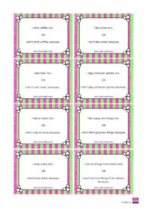 Zestaw 48 kart konwersacyjnych do ćwiczenia mówienia, logicznego uzasadniania wypowiedzi.