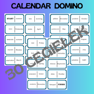 30 cegiełek (3 strony A4) z porami dnia, dniami tygodnia, miesiącami i porami roku.