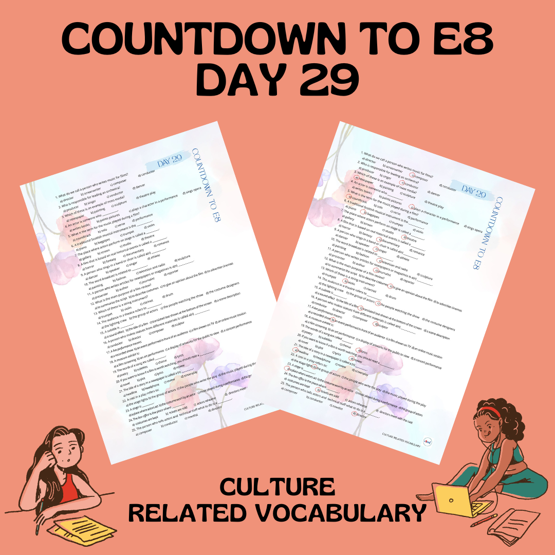 Karta pracy – powtórzenie słownictwa z zakresu tematycznego KULTURA.