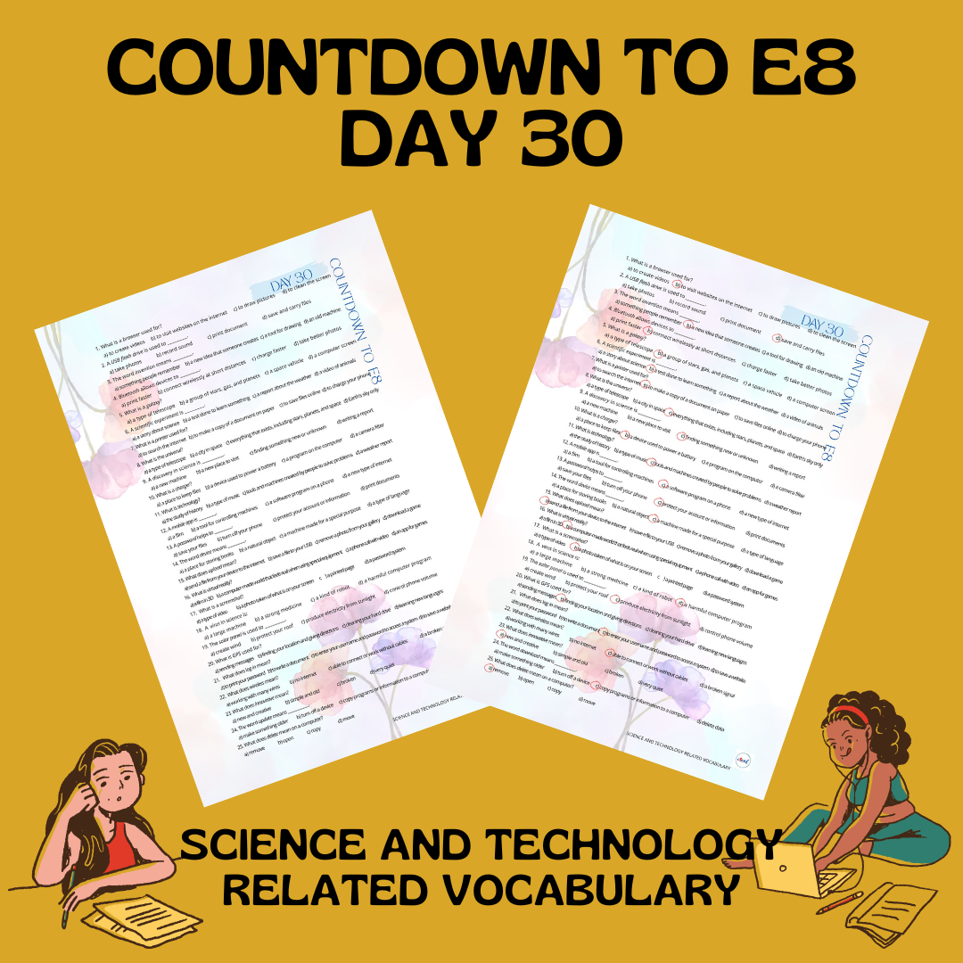 Karta pracy – powtórzenie słownictwa z zakresu tematycznego NAUKA I TECHNIKA.