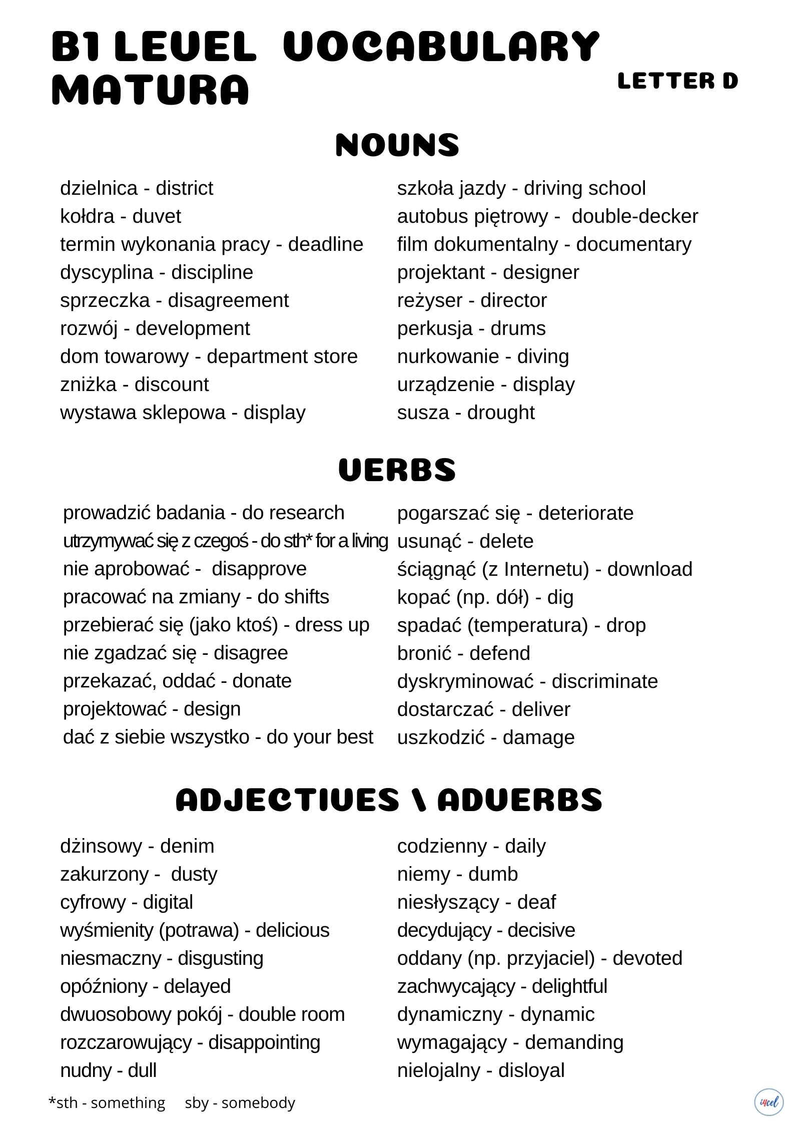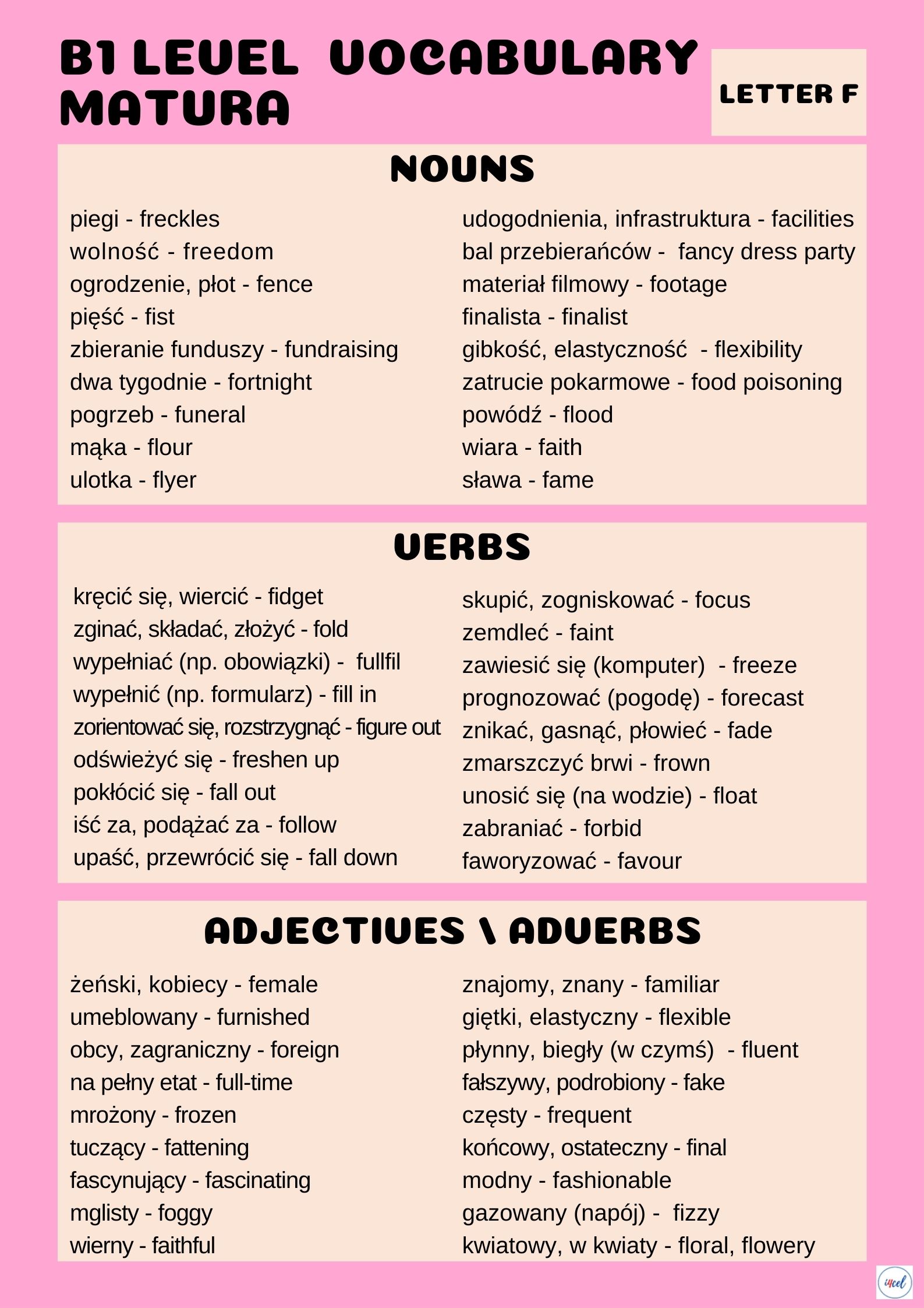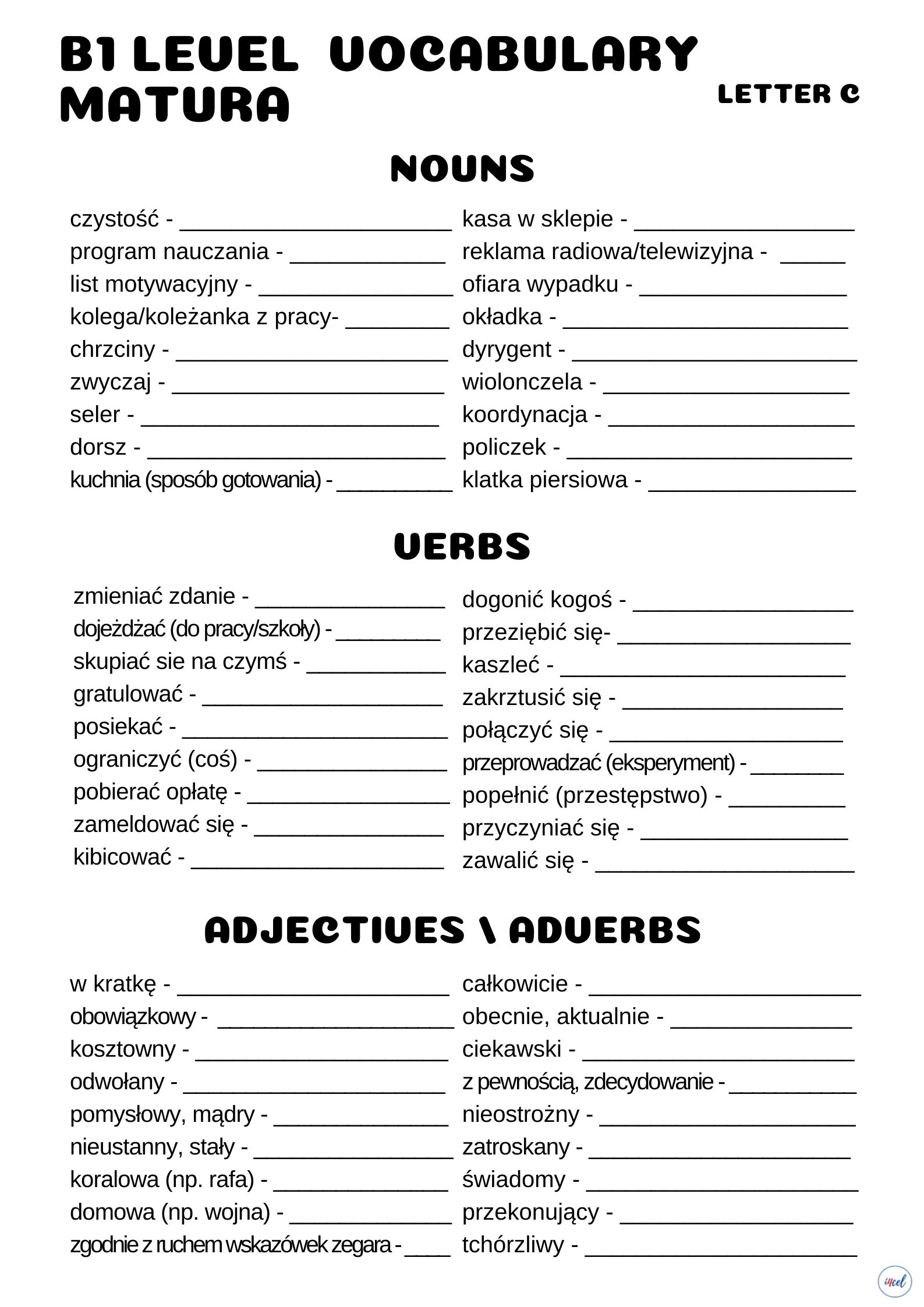 Ten zestaw to kompleksowe powtórzenie słownictwa wymaganego na egzaminie maturalnym na poziomie podstawowym, uporządkowane w czytelny, alfabetyczny sposób, który ułatwia systematyczną naukę i szybkie przypominanie materiału.