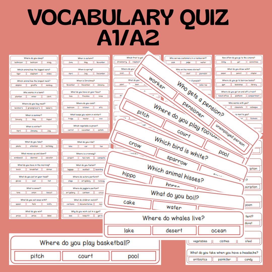 Chcesz w prosty i angażujący sposób sprawdzić słownictwo uczniów na poziomie A1–A2? Ten zestaw jest idealny!