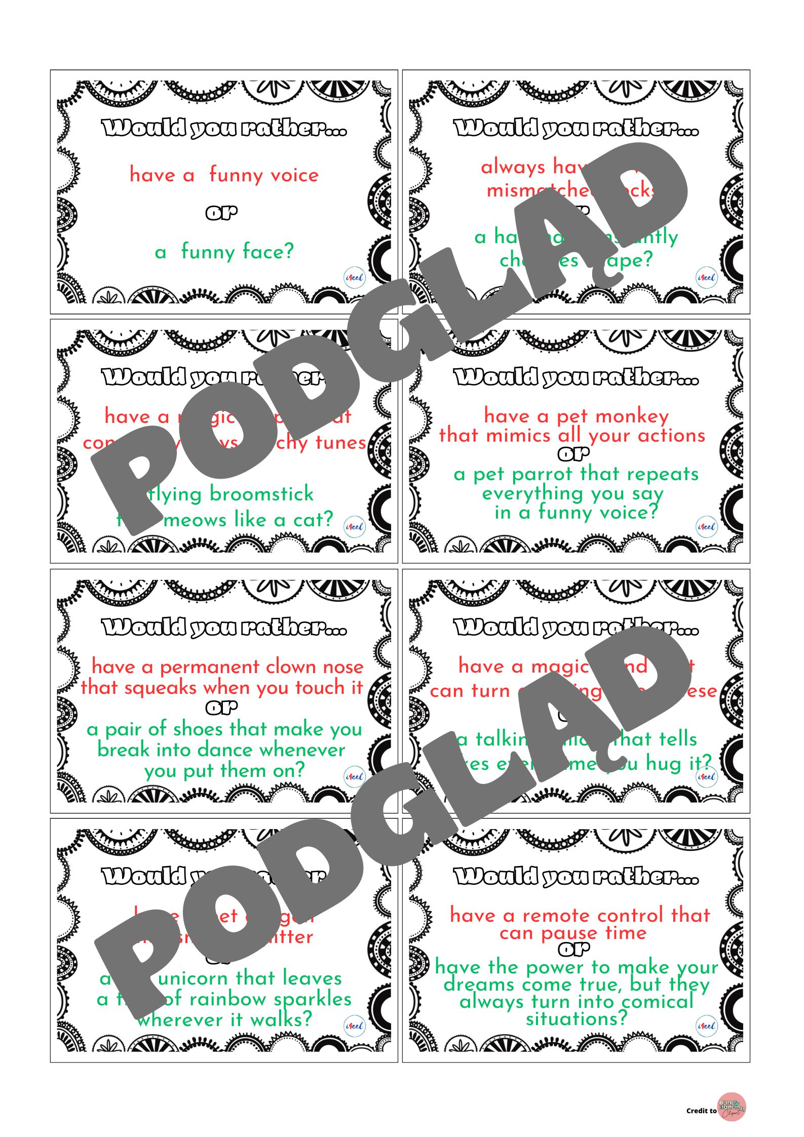 Na kartach znajdziecie szeroki zakres zabawnych pytań (dwie opcje do wyboru na każdej karcie), które pobudzą wyobraźnię i kreatywność uczniów.